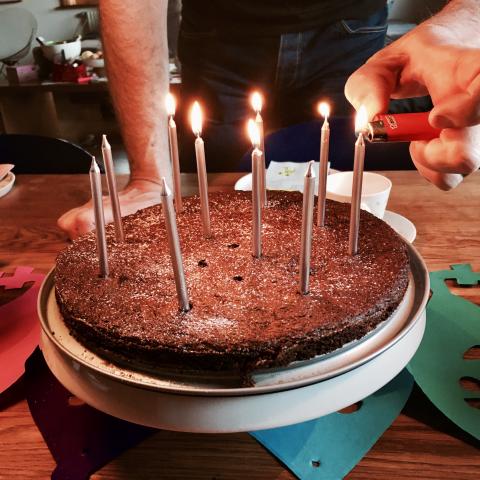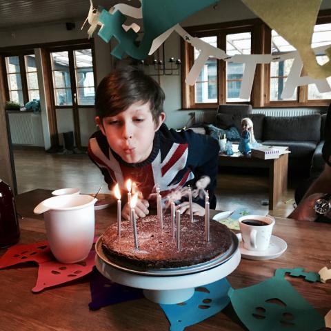 För tio år sedan föddes vår älskade Olle! Idag efter middagen sjöng vi och firade honom vid köksbordet med girlanger, sång, kladdkaka och presenter! Ny jacka, tröja och strumpor, superhörlurar till XBox och en specialskriven dikt (till både Olle och Maria) som en musiker personligen skrivit. Fina presenter fick han! Maria hade ritat en teckning med mycket färg också. I skolan sjöng de för honom i hans klass. Han har verkligen blivit firad idag!